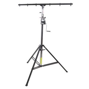 It folds easily to a portable size for transport. It’s equipped with a smooth, heavy-duty cranking mechanism. Â Perfect for a live band and mobile DJ applications, eliminate direct lifting and lowering of heavy loads.