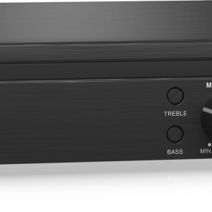 CA1202’s controls are sublimely intuitive, allowing the operator to quickly make adjustments. The front panel power button and Master volume knob are easily accessible, enabling virtually anyone to operate the system. Bass and Treble controls are also available for fine tuning – but require a tool when making changes.