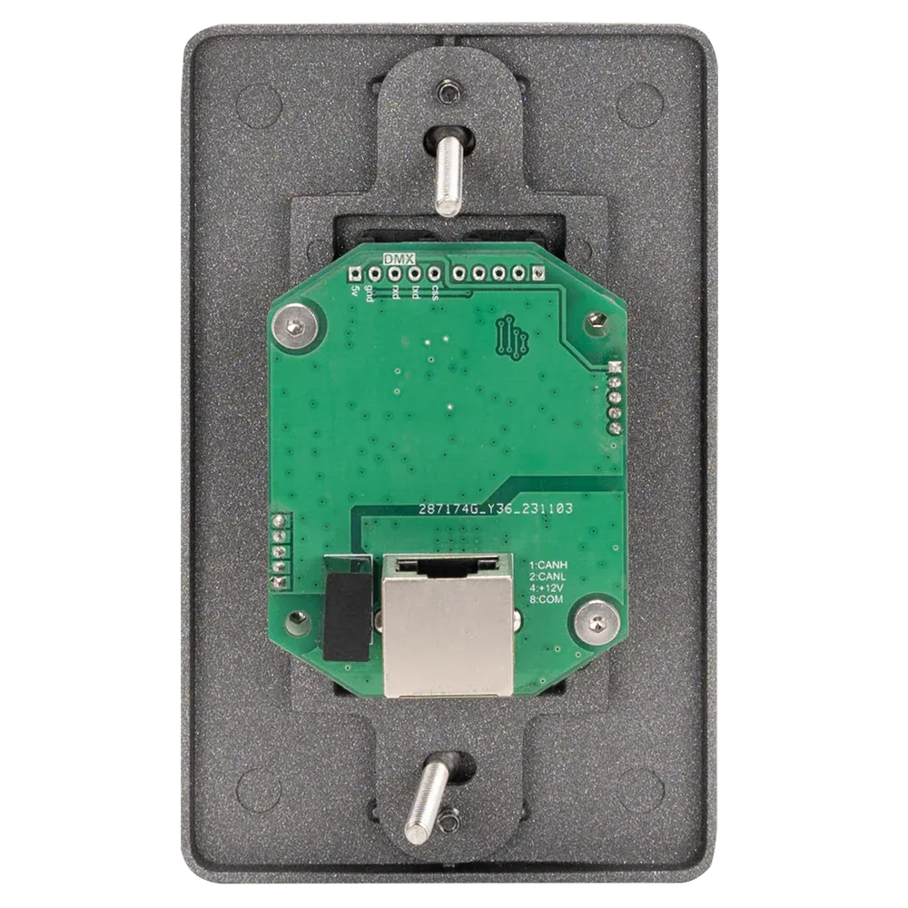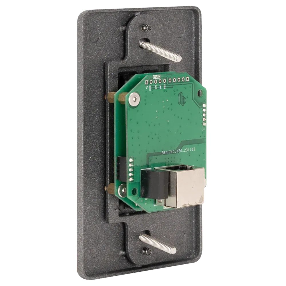 Brand: Obsidian ControlThe NETRON BS10 is a stylish wall station designed for cue or preset recall from the EN12i EtherDMX node. It features 10 numbered, backlit buttons for simple, intuitive operation and uses standard CAT5 wiring for power and data.
