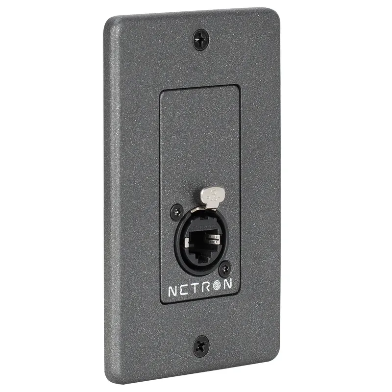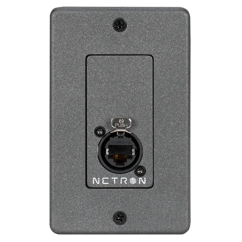 Brand: Obsidian ControlThe NETRON WP1CAT6 provides a CAT6A-compliant locking RJ45 connector in a Decora insert plate. Designed as a simple passthrough, it integrates easily into Ethernet or DMX infrastructure and includes a matching NETRON Decora wall plate.