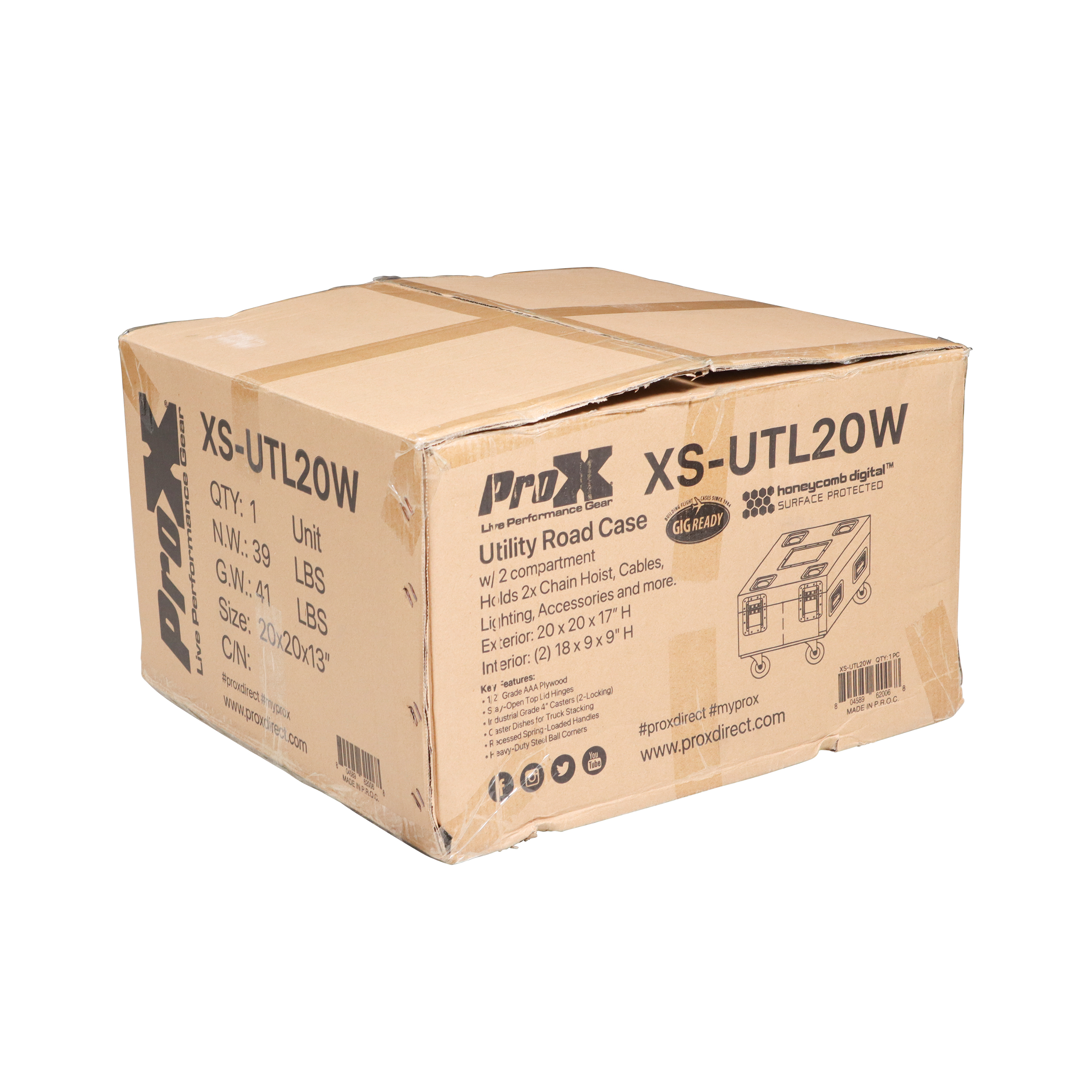 ProX XS-UTL20W Utility Case Holds Chain Hoist 1/2″ plywood w/ 4 x 4″ Caster & Top Dishes Exterior: 20 x 20 x 17 inch Int: 2 section of 18x9x9.