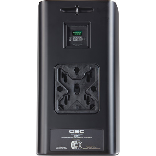 The black AcousticDesign Series QSC AD-S8T is a transformer-equipped 8″ surface-mount loudspeaker supplied with the award-winning X-Mount system, making it suitable for 70/100V or 8-ohm operation in a variety of foreground and background music applications, whether installed in horizontal, vertical, wall, or ceiling deployments.