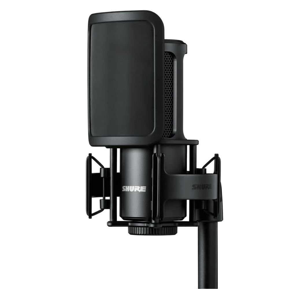 The internal pop filter of the Shure SM4 dual-diaphragm condenser home recording microphone is already a steadfast stalwart against a wide range of pops, rumbles, and other warranted noise, but for the utmost in plosive protection, audio engineers recommend adding the Shure A4PF pop filter as a studio sidekick.