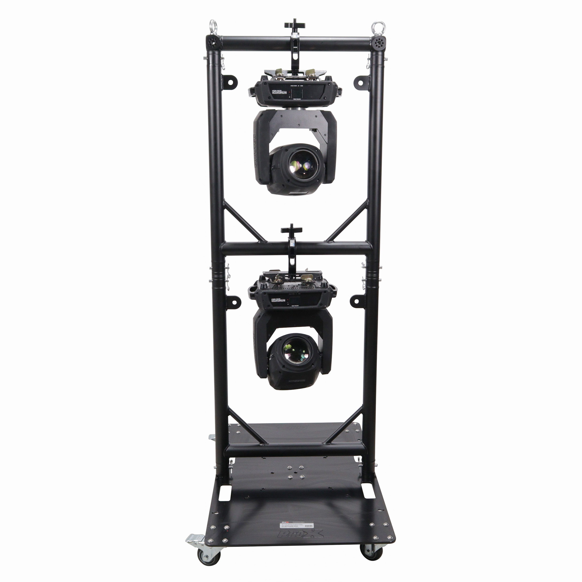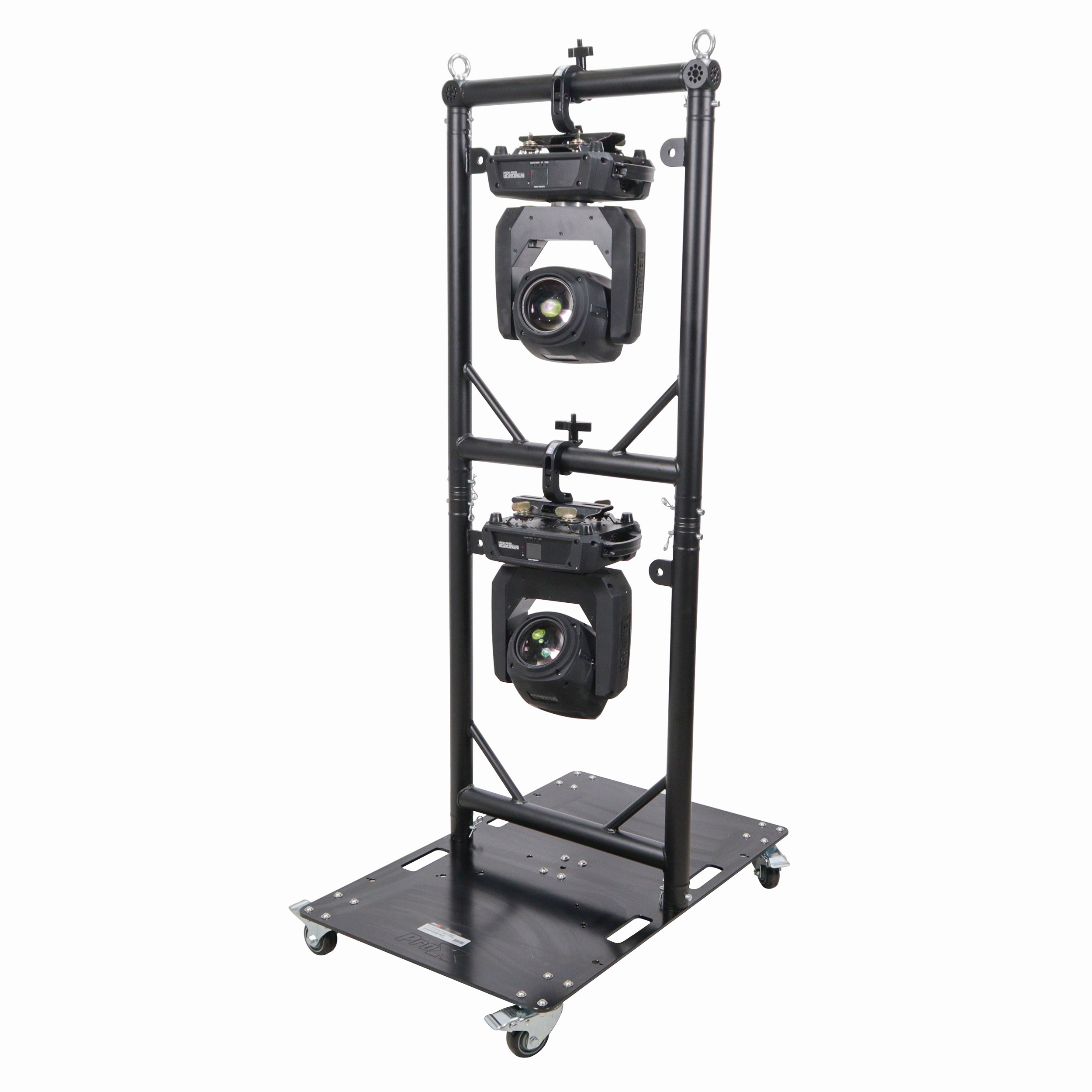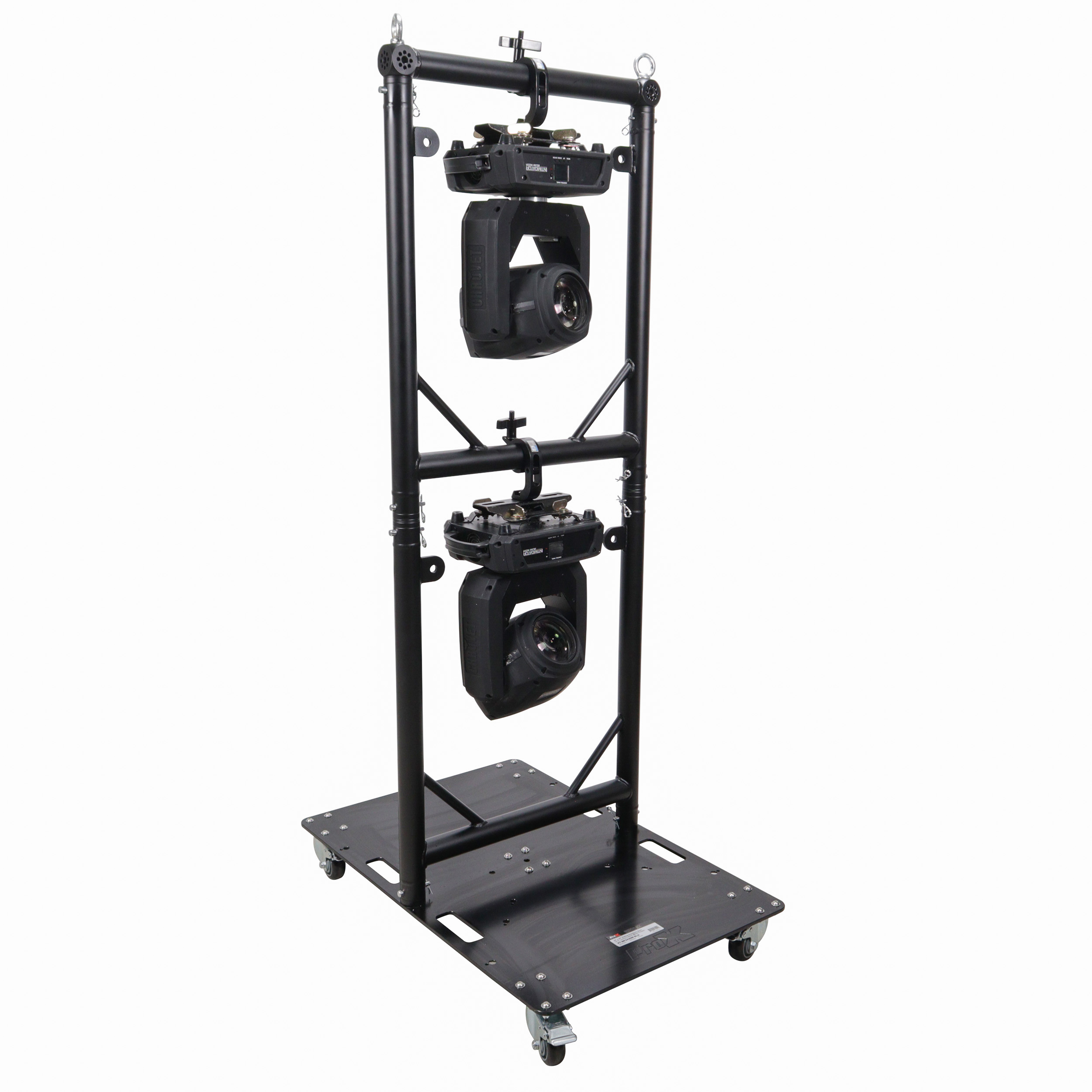 TheXT-GRU3024grid unitsallowfor grid configurations tailored to your needs. You can hang up to10 grids beneath each other for custom layouts. The hanging frames are built from durable EN-AWT6 6082 aluminum frames and eachgridwill fit small to medium-sized moving-head lights. The rolling baseplate is constructed from10mm AWT6 6082 Aluminum Plate with handle cutouts and multiple drilled stud mounting holes for versatility.The baseplate is designed to work with theXT-GRU3024grid units but can also be configured to work with F34 trussing products as well. The baseplate casters allow for easy moving of theXT-GRU-PKGX3 from the truck to venue to stage with minimal effort and protection for your lighting devices.